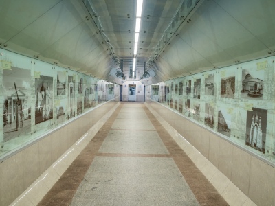 | Пересечение улиц Челюскинцев и проспекта Пушкинского: | Стены подземного перехода украшены картинами и фотографиями исторических событий, зданий, видов Могилева. Гости и жители города соприкоснутся с историей города и увидят как менялся Могилев с течением времени. На выходе из уникального музея установлена иллюстрированная карта с достопримечательностями города. |